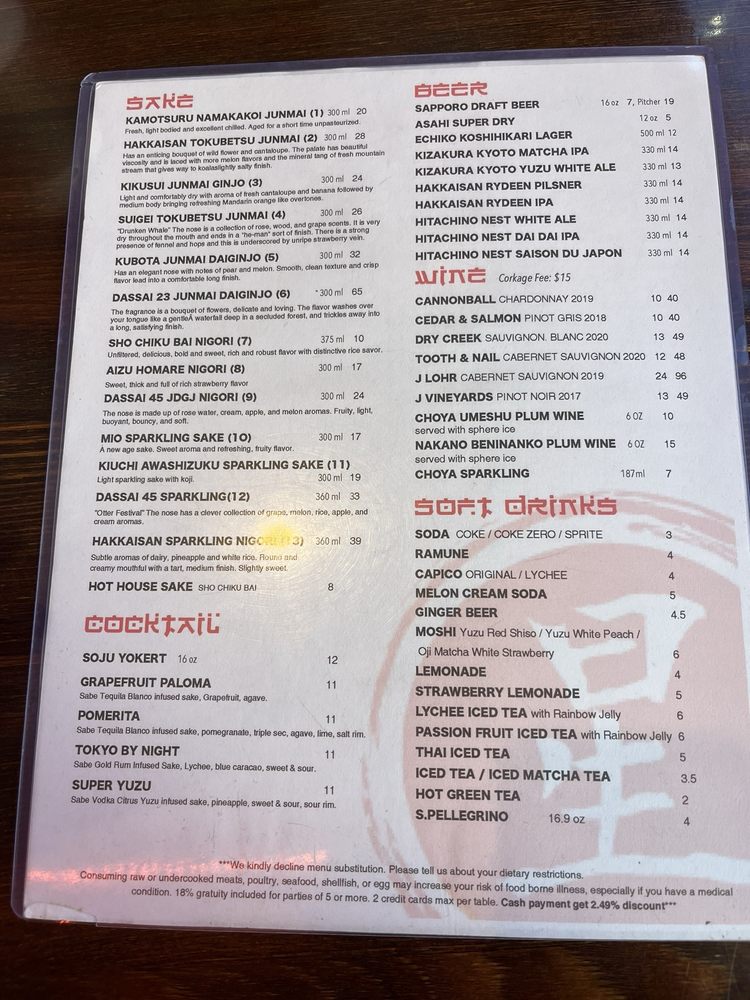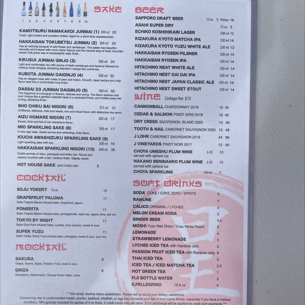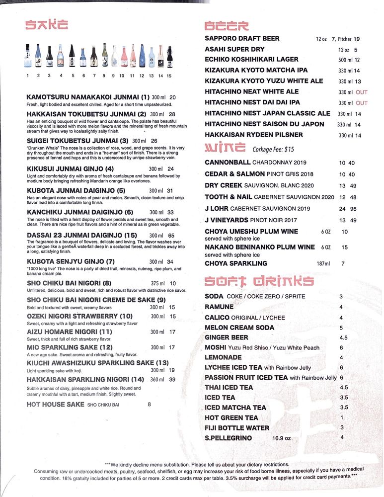 Sake (Must be 21 to purchase)